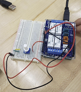 From left to right: relay-controlled circuit; schematic diagram of relay-controlled circuit; serial monitor debugging.